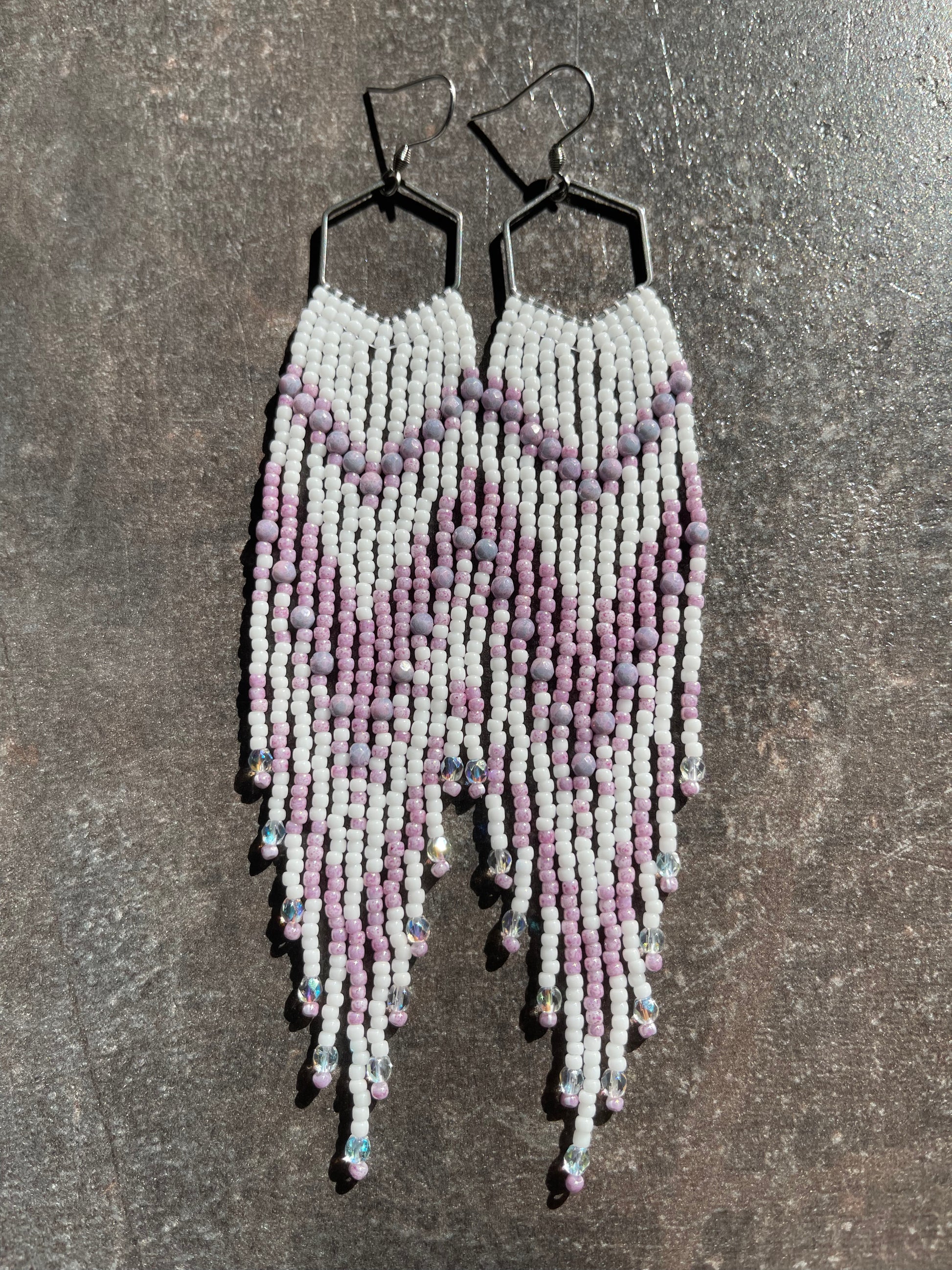 Náušnice z ručně vyrobených rokajlových korálků TOHO jsou dokonalým spojením preciznosti a luxusu. Jejich kombinace nachové, sytě bílé a mramorově růžové barvy vytváří úchvatný kontrast, který láká na pohled. Tyto náušnice jsou skvělým doplňkem pro každou příležitost, od formálních večírků po romantické večeře či svatební den. Jejich nadčasový design a jemné barvy zaručují, že získají srdce každé nositelky.